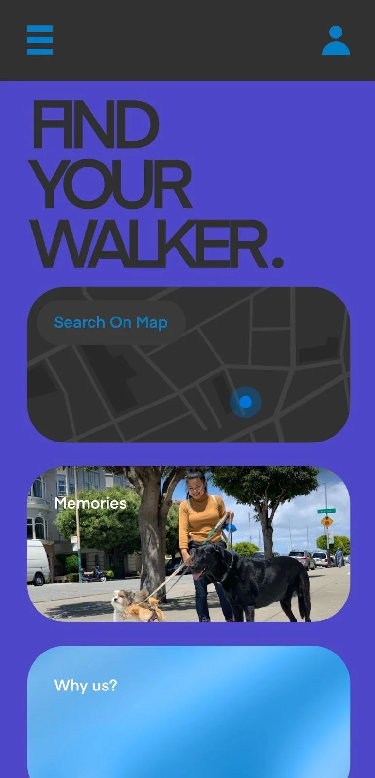 Don’t like most dog walking services’ dated and web-oriented designs, would want a relatively more lightweight app design to use more enjoyably